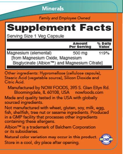 NOW Magnesium 500mg 120 Vcaps