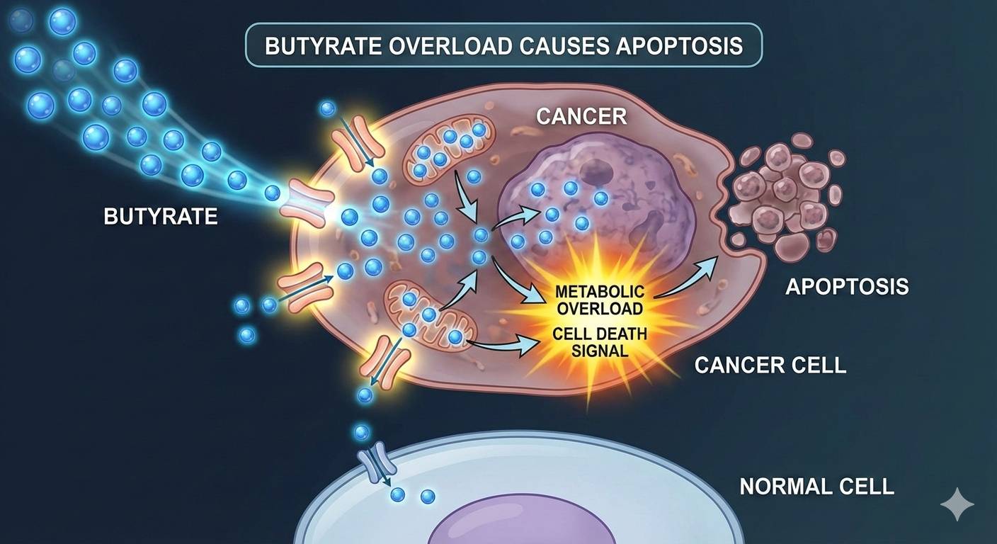 ?? Apoptosis in Cancers Outside the ColonButyrate's ability to trigger apoptosis is not exclusive to the colon, as its core mechanism—Histone Deacetylase (HDAC) inhibition - is a potent anti-cancer strategy relevant to many tumor types.Evidence for Anti-Cancer Effects Beyond the ColonButyrate, or its sodium salt (sodium butyrate), has been shown in various in vitro (cell culture) and animal studies to inhibit proliferation and induce apoptosis in several non-colonic cancer cell lines, including: